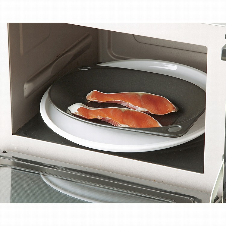 電子レンジのマイクロ波によって発熱するプレートで、魚や肉などがこんがりと焼けます。