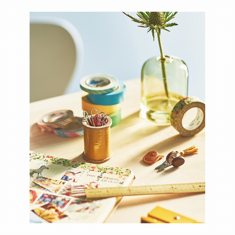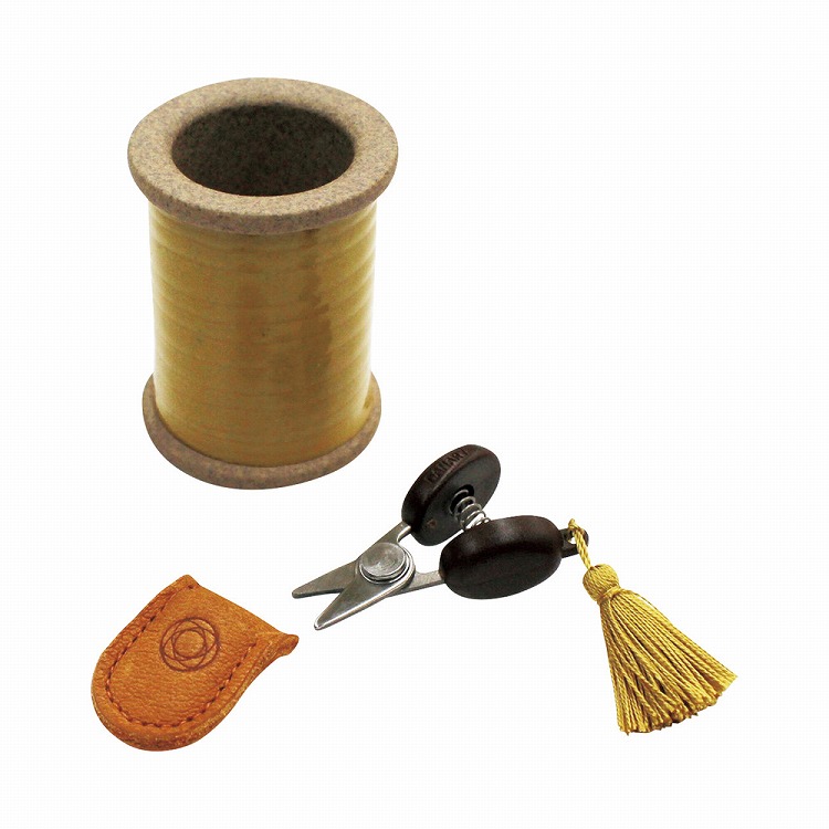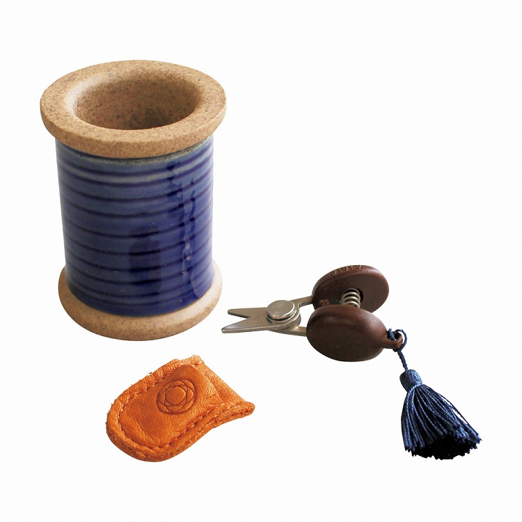 針やクリップをキャッチするマグネット入りの波佐見焼のスプールと、はさみメーカーの遊び心から生まれた豆ばさみのセットです。