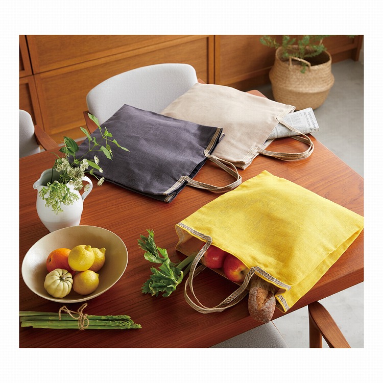 軽くてコンパクトに畳める、綿100%のかや生地で作った収納袋付きのエコバッグ。
