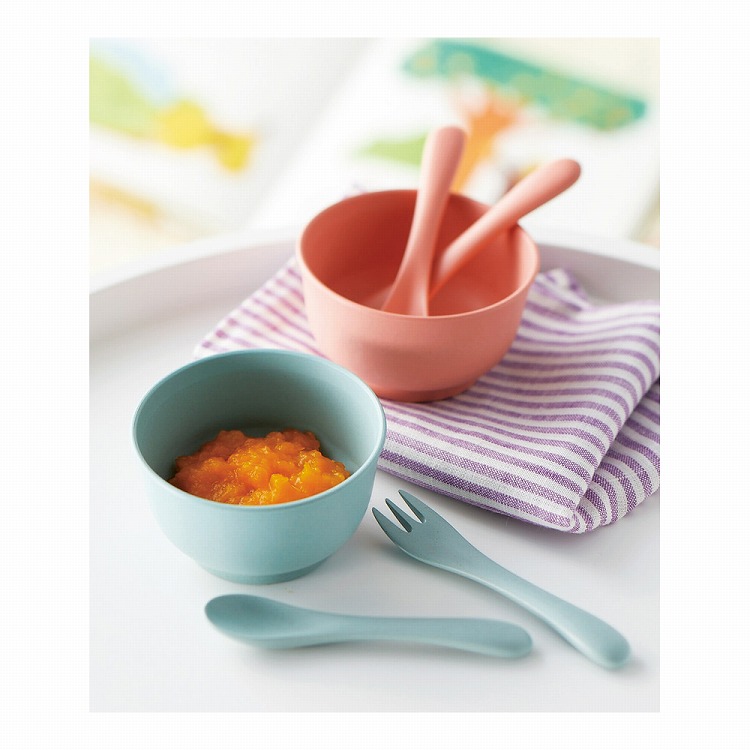「ヒノキ」の木粉と融合した新しいプラスチック「ヒノキバイオマスプラスチック」を原料として独自の製法で作られた、お子さんにも安心、安全にお使いいただける食器です。