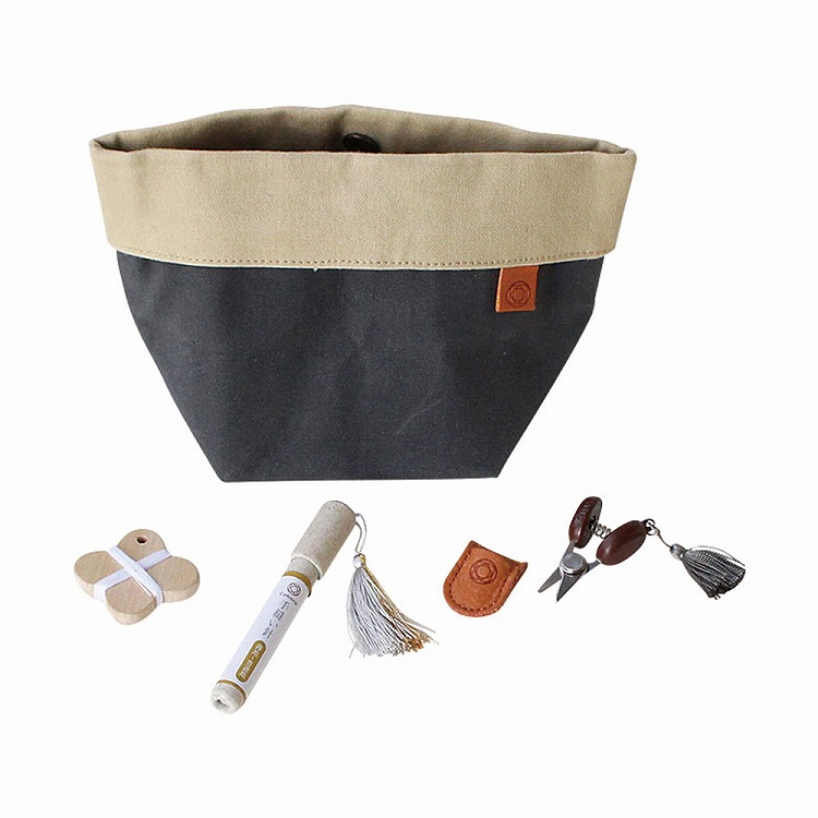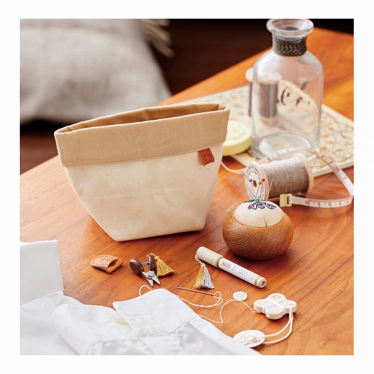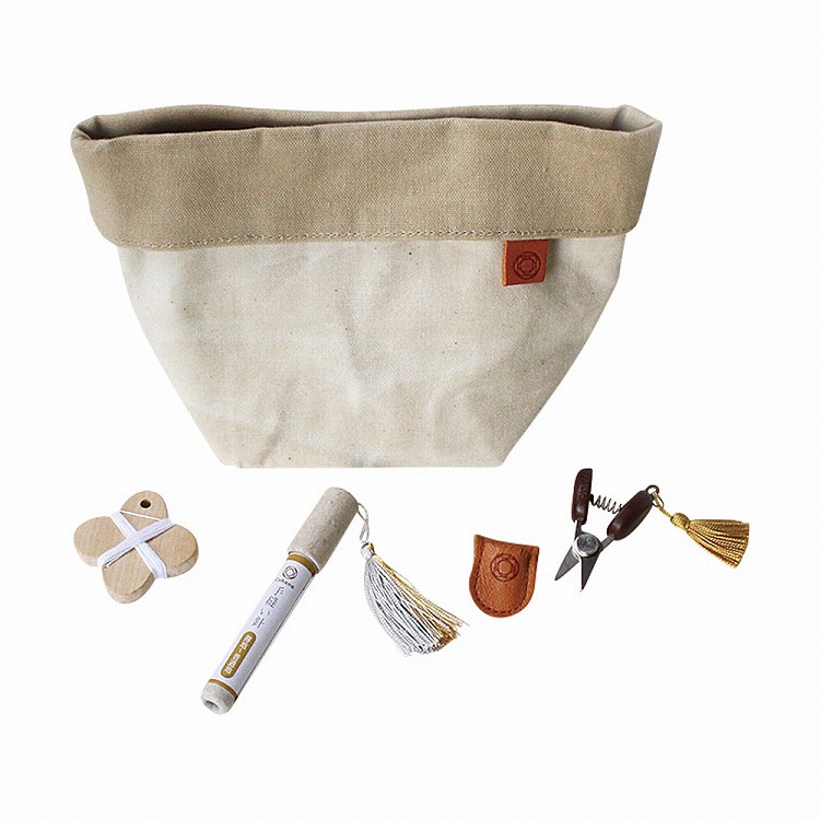 縫針と糸と豆ばさみの3点を帆布製のポーチに入れた携帯に便利なお裁縫セットです。