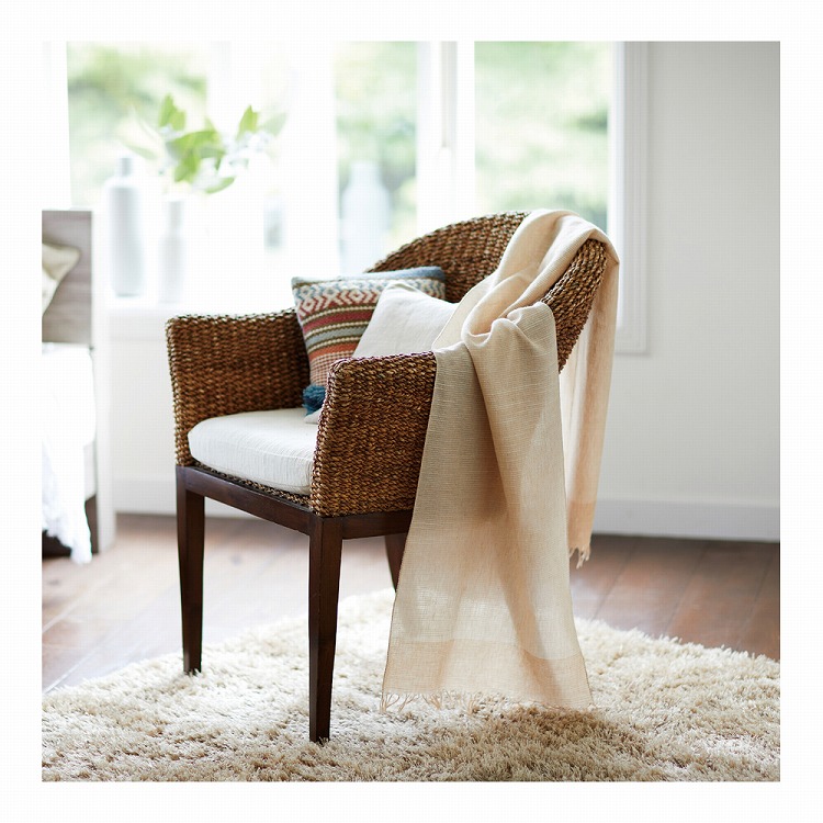 オーガニックコットンとウールのスラブ糸を使用した、優しい風合いのストールです。