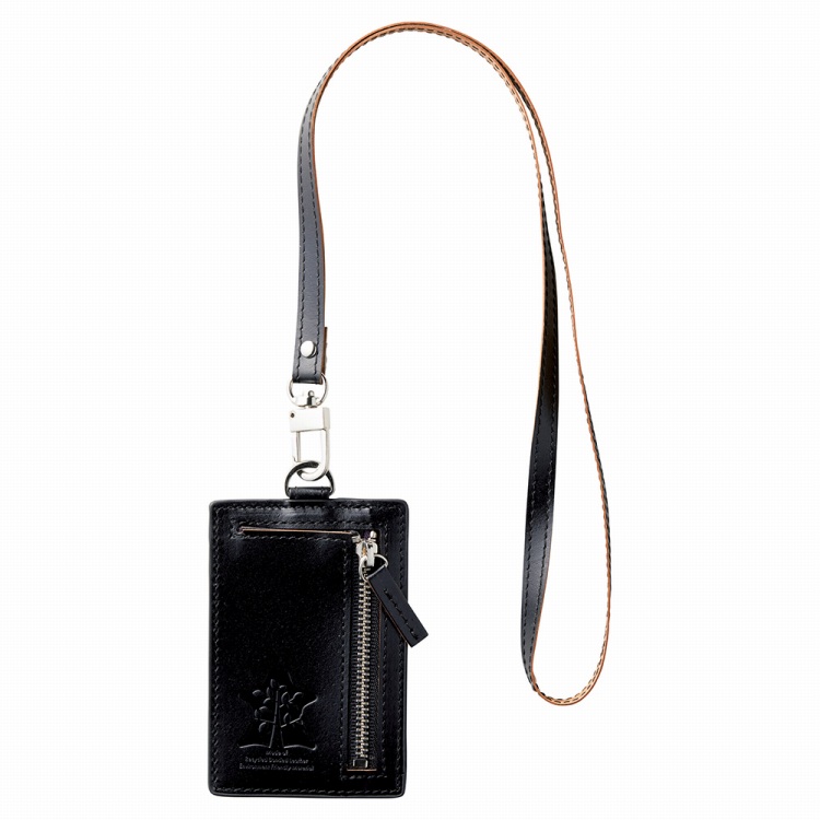 環境にやさしいリサイクルレザーを使用して作られたネックウォレット。
