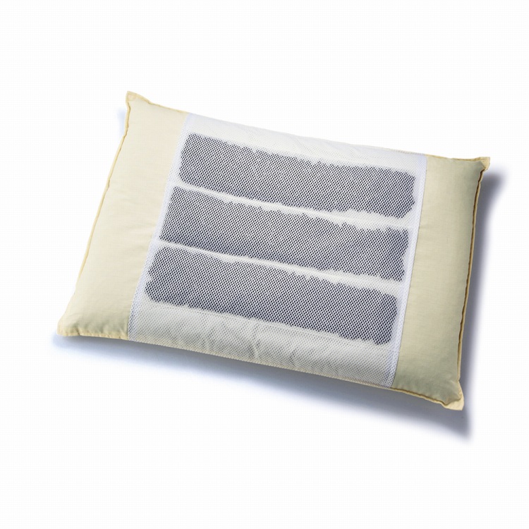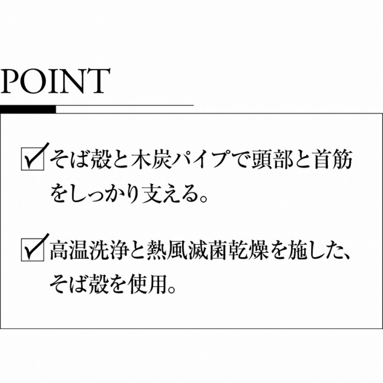 消臭作用のある木炭を練り込んだパイプと滅菌乾燥を施した「洗いそば殻」の京都府産のハイブリッド枕です。