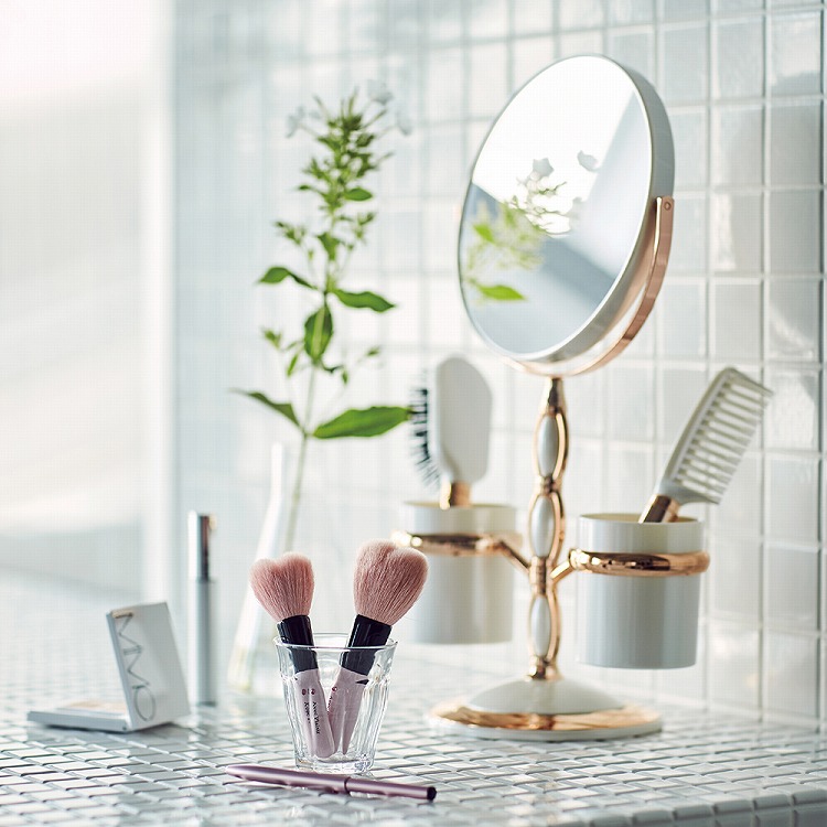 ホワイトとピンクゴールドのカラーリングが上品なスタンドミラー。