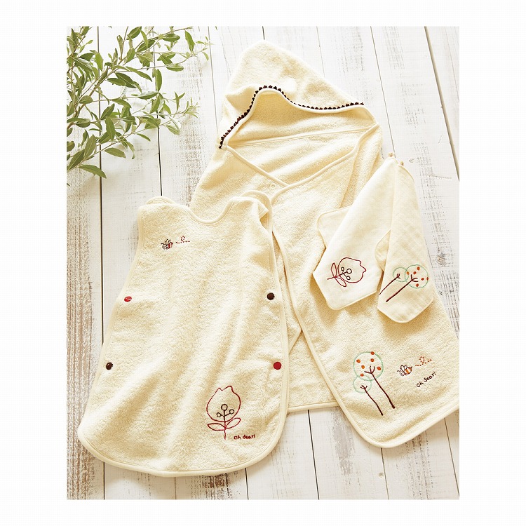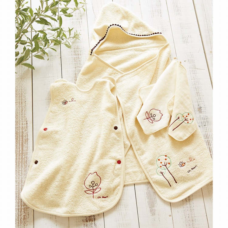 丁寧に織り上げたパイルは、保温性・吸水性があり、赤ちゃんをやさしく包みます。